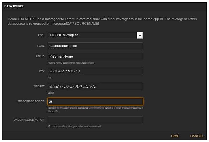 - APP ID คือ App ID ที่ได้สร้างผ่านหน้าเว็บ https://netpie.io/app ในตัวอย่างในภาพด้านล่างคือ PieSmartHome